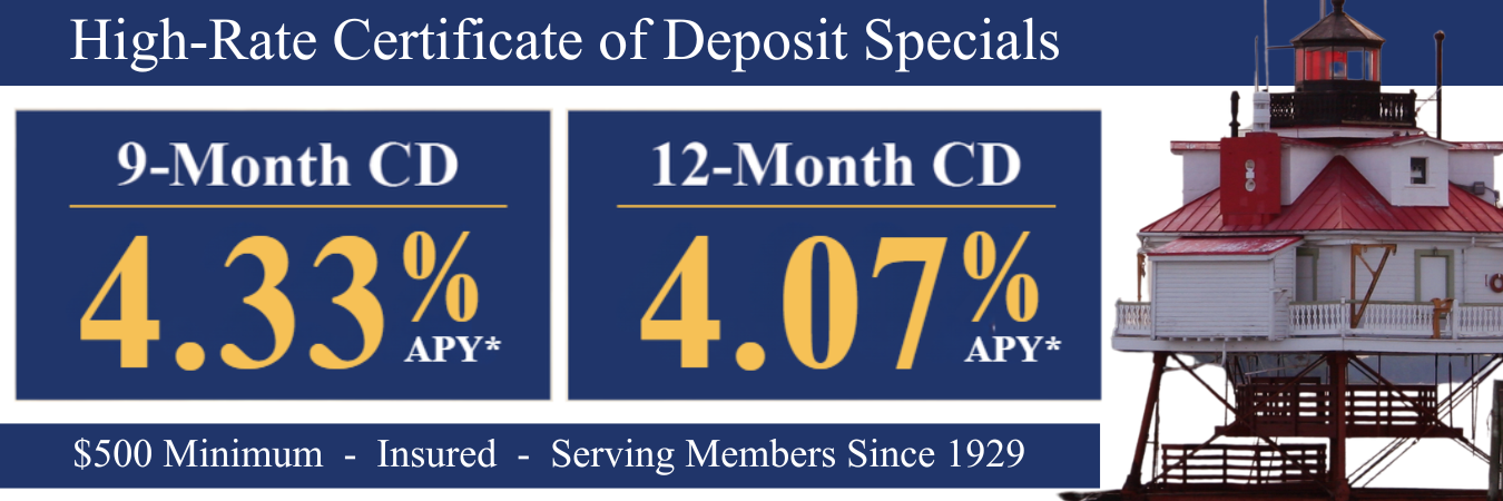 *APY = Annual Percentage Yield. Rates are subject to change monthly and are fixed for the term of the certificate. Certificates dividends compound daily. The minimum balance to open a certificate is $500. Withdrawal of the Share Certificate funds before the maturity date will incur an early withdrawal penalty. Single term only. CD accounts will not automatically renew at maturity and will not pay dividends after the maturity date.