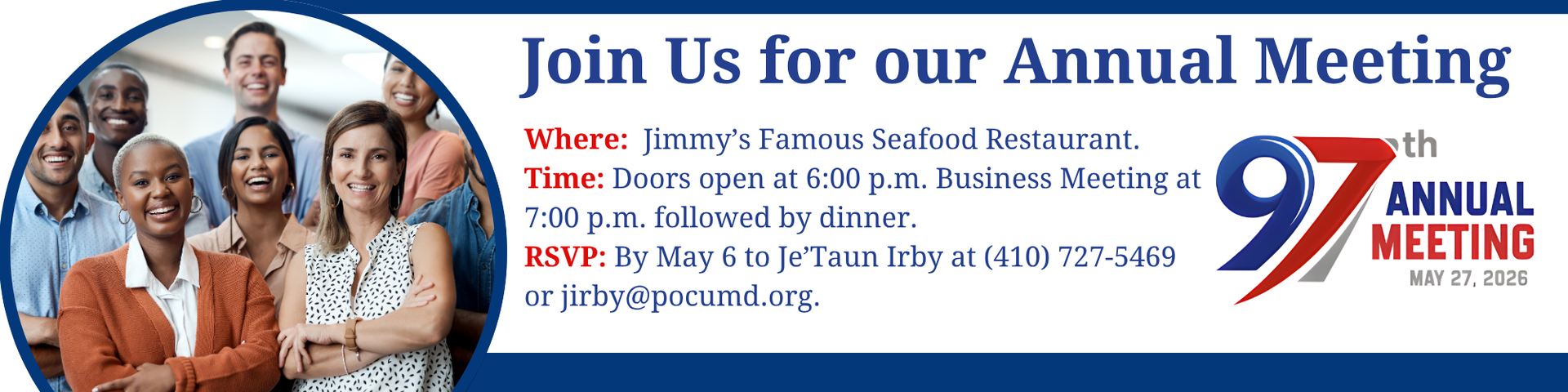 RSVP by May 6th. Call 410-727-5469 x108 or email Je’Taun Irby at jirby@pocumd.org. Space is limited.
