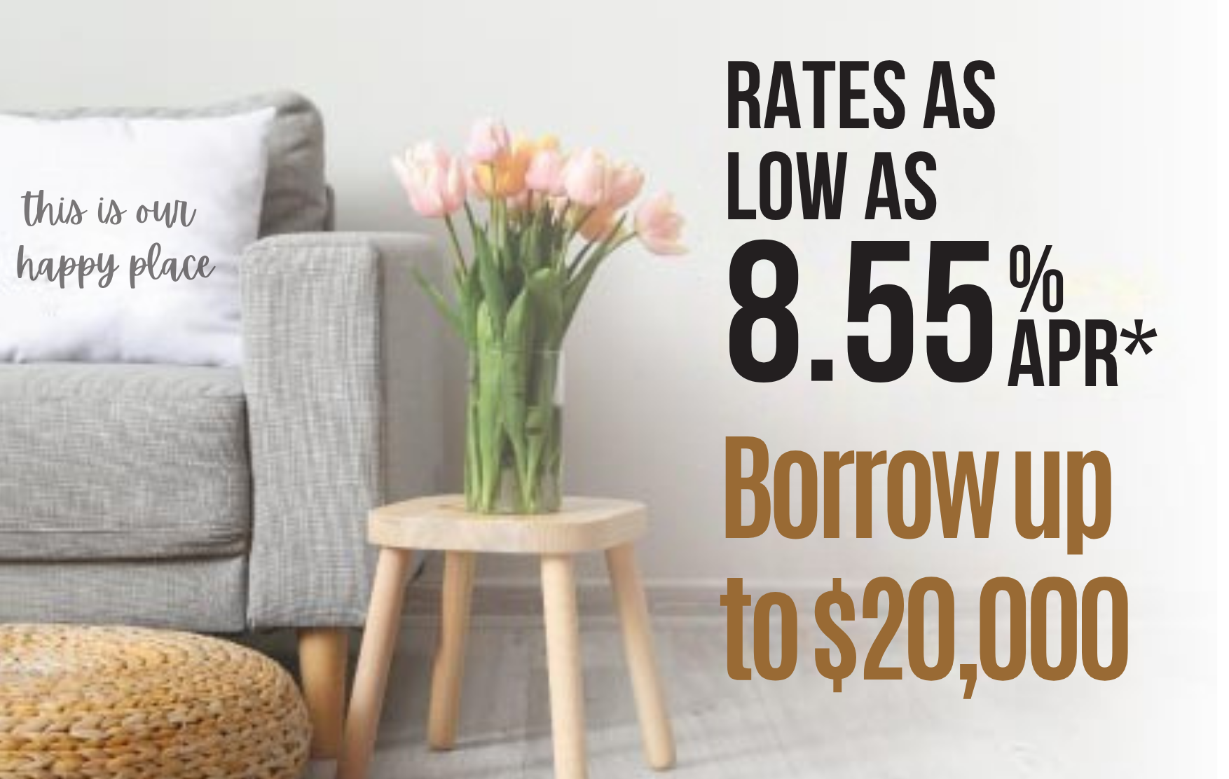 * PERSONAL LOANS. APR is Annual Percentage Rate. Promotional rates are for well qualified members. Rates indicated are the lowest rates. Quoted APRs are subject to change daily at the discretion of the Board of Directors. Open to all members who are eligible under current POCUMD underwriting guidelines. Limited-time offer. Contact Credit Union for additional details.